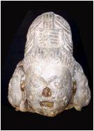 Triple head of Siva adorned with matted hair, representing his various forms.