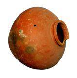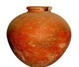 | Description / विवरण | A redware medium size pot with round base, globular pot, sloppy shoulders, convex neck and splayed out externally thick rim broken . Of medium fabric it is treated with fine slip. |