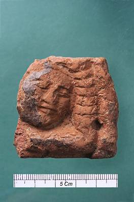 | Description / विवरण | Terracotta fragment preserving the head and hand of a lady. |