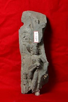 | Description / विवरण | Lakshmi holding chauri, fragment of a stele representing Visnu and his attendants. |