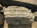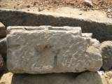 | Description / विवरण | The sotne slab has decoration only on one side . Three flat and low carved relieves are visible. In between the flat carved mouldings two grooved lines are visible. Chiselingmarks are visible on one surface. |
