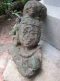 | Description / विवरण | Bust of a male God having bead necklace in neck. Heavy ear ring hair is arranged like a chignon on head. An ornet design sprang from hair design. Both arms are broken one palm is notice in front of his chest. |