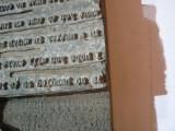 | Description / विवरण | This is a rectangular printing block used for prirting. 12 lines are found in English laguage in a doe cast techique. Metal plate is attachted to a wooden block through iron nails. |