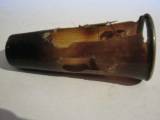 | Description / विवरण | The cylindrical horn tunbler has a metal protecter on the border of the top portion at rim. In the middle portion of the tumbler there is a line mark. The hprn object is semi-transparent. |