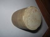 | Description / विवरण | This is a pen stand made in schist stone. Striation mark is perfectly noticed on it. Thin groove mark also noticed in three horizontal bands. Base is slightly raised. Tan colour is applied on rim. It is manufactured throught a laethe. |