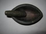 | Description / विवरण | This is a pestler and quern. It is keel shaped.It has a good lustrus polish. Quern is very small. It is tappering. Wide part is erode and narrow. Queren is 6.3cm in length. |