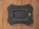 | Description / विवरण | This is a photo frame. Shape is irregular. Every side is con cave. Outer line is slightly elevated. Middle is cut out in rectangular shape and has border in dot designs. On back side plate is weled with upper portion which is open to insert a photo in it. A supporting stick is attached to it. |