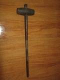 | Description / विवरण | This is a small wooden hammer with on wooden handle inserted on the middle of a wooden block. Eapers towards both side. Hammer shape is roundish. Tip of the handle pojected in front. |