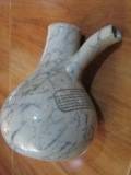 | Description / विवरण | This is an inhaler used for medical purposes. It has a bulging circuler body long narrow neck and plain rim. A chute is projected from neck. Painted in blue and white. |
