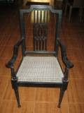 | Description / विवरण | The wooden chair has two lathe turned front legs. Rear two legs are slightly tilted to wards back. Two hand rests are curved. Seat is woven with thin plastic bands. Back is carved out with vertical bars from a single wood. |