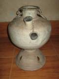 | Description / विवरण | The pitcher has a wide base and two handles are fixed near neck of the pitcher. Pitcher has a flairing mouth. One tap is fixed on the belly portion and another narrow mouth is fixed near the mouth. It was working as a thermo flax because the mouth is pierced through the bottom in cylindrical fashion. |