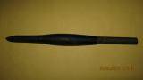 | Description / विवरण | One wooden pen with mouth broken. Back is made of tin pipe with series of groove designs on top of the back. Middle is convex and circular. |