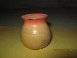 | Description / विवरण | Small wooden pot convex circular body and designed like a water pot. Rim is flaring out. Rim painted with pink colour and body colour is light brown. |