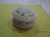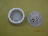 | Description / विवरण | Small marble casket has 3 short legs., The circular casket has decorate jail work with a cover having a floral decoration. The top floral carving is attached with cover through one type of glue. |
