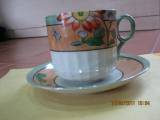 | Description / विवरण | The cup is with painted motifs on upper part of its outside. The plate has an outer circle with painting. The background is white and paintings are in other colours. |