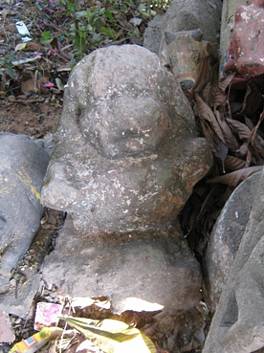 | Description / विवरण | The image is broken for which only face part is visible. Face is eroded. Moss and lichen growth is visible. It has the bottom slab slightly projected. Right leg is raised. |