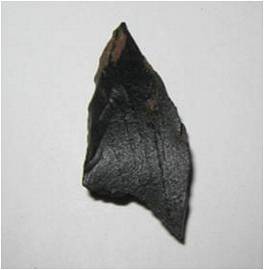 | Description / विवरण | The small flake is broken. Shape is like one barbed arrowhead. One lateral side having the minute fluting mark.It has a two sharp tips. |