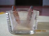 | Description / विवरण | Glass made rectangular bowl is small in size. Both side are oblique shaped. Its body is thick. Four vertical corners are cut in zigzag mode. Its depti. Is 2.2cm, two horn made wheels having eight spokes each and one having axial and other having central hole without axial are found below. Its colour is brown. Black spot is noticed on it. |