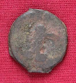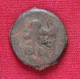 | Description / विवरण | The shape of the Coin is circular. Obverse -A Kushana type king standing with his right arm curved upwards and left arm curved downwards. Reverse -Probably, a standing figure of MAO or Moon-God with right arm extended and the crescent above the left shoulder. The left arm is not visible |