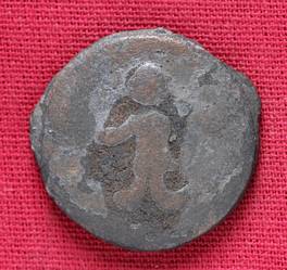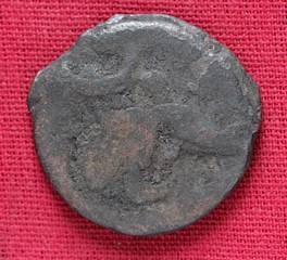 | Description / विवरण | The shape of the Coin is circular. Obverse -A Kushana type king standing with his right arm curved upwards and left arm is not visible. Reverse -Probably, a standing figure of MAO or Moon-God with right arm curved downwards and the crescent above the left shoulder. The left arm is not visible. |