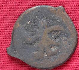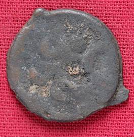 | Description / विवरण | The shape of the Coin is circular. Obverse -A Kushana type king standing with his right arm curved upwards and left arm curved downwards. Reverse -Probably, a standing figure of MAO or Moon-God with right arm curved upwards and the crescent above the left shoulder. The left arm is not visible |