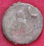 | Description / विवरण | The shape of the Coin is circular. Obverse -A Kushana type king standing with his right arm extended and left arm curved downwards. Reverse -Probably, a standing figure of MAO or Moon-God with right arm extended and the crescent above the left shoulder. The left arm is not visible |