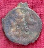 | Description / विवरण | The shape of the Coin is circular. Obverse -A Kushana type king standing with his right arm curved upwards and left arm curved downwards. Reverse -Probably, a standing figure of MAO or Moon-God with right arm curved upwards and the crescent above the left shoulder. The left arm is not visible |