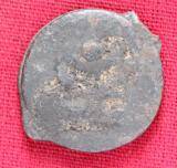 | Description / विवरण | The shape of the coin is circular. Obverse Kushana type king, standing with his right hand curved upwards and his left arm downwards. Reverse Probably the figure MAO or Moon-God with his right arm curved upwards and the crescent above the left shoulder. |