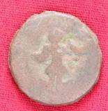 | Description / विवरण | The shape of the coin is circular. Obverse Kushana type king, standing with his right hand curved upwards and his left arm extended. Reverse Probably the figure MAO or Moon-God with his right arm curved upwards and the crescent above the left shoulder. |