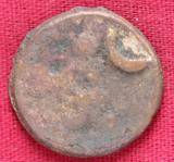 | Description / विवरण | The shape of the coin is circular. Obverse Kushana type king, standing with his right and left hand are indistinct. Reverse Probably the figure MAO or Moon-God with his right arm curved upwards and the crescent above the left shoulder. |