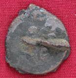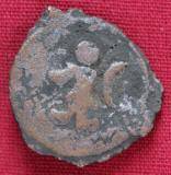 | Description / विवरण | The shape of the coin is circular. Obverse Kushana type king, standing with his right hand indistinct and his left arm curved downwards. Reverse Probably the figure MAO or Moon-God with his right arm curved upwards and the crescent above the left shoulder. |