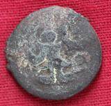 | Description / विवरण | The shape of the coin is circular. Obverse Kushana type king, standing with his right hand curved upwards and his left arm extended. Reverse Probably the figure MAO or Moon-God with his right arm curved upwards and the crescent above the left shoulder. |