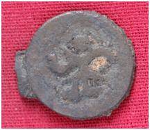 | Description / विवरण | The Shape of the Coin is Circular. Obverse A Standing figure of Kushana type king, with upwards curved right hand and downwards curved left hand. Reverse Probably a standing figure of MAO or Moon-God with upwards curved right hand and left hand is not visible, the crescent above the left shoulder. |