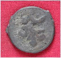 | Description / विवरण | The Shape of the Coin is Circular. Obverse A Standing figure of Kushana type king, with upwards curved right hand and left hand is not visible, wears boots and tunic. Reverse Probably a standing figure of MAO or Moon-God with upwards curved right hand and left hand is not visible, the crescent above the left shoulder. |