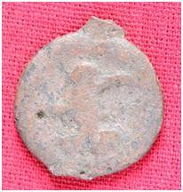 | Description / विवरण | The Shape of the Coin is Circular. Obverse A Standing figure of Kushana type king, with outstretched left hand and extended right hands, wears boots and tunic. Reverse Probably a standing figure of MAO or Moon-God with extended right hand and left hand is not visible, the crescent above the left shoulder |