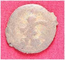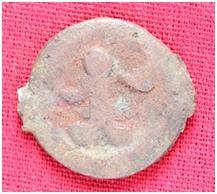 | Description / विवरण | The Shape of the Coin is Circular. Obverse A Standing figure of Kushana type king, with outstretched left hand and right hand slightly curved upwards, wears boots and tunic. Reverse Probably a standing figure of MAO or Moon-God with upwards curved right hand and left hand is not visible, the crescent above the left shoulder, wears boots tunic. |
