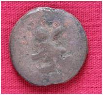 | Description / विवरण | The Shape of the Coin is Circular. Obverse A Standing figure of Kushana type king, with extended right hand and uplifted left hand, wears boots and tunic. Reverse Probably a standing figure of MAO or Moon-God with upwards curved right hand and left hand is not visible, the crescent above the left shoulder. |