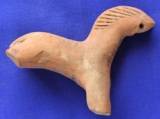 | Description / विवरण | Crude model of a headless animal figurine with a long neck . Ears are palliated of clay. Below the right ear bears a deep hole. Face and legs are missing. Rows of circular punches and oblique lines all over the body. |
