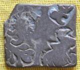 | Description / विवरण | The coin is imperial type of punch marked coin. The shape of the coin is circular Obverse Sun, animal, Tree, six armed wheel, snake, taurine. Reverse Other symbols are indistinct. |