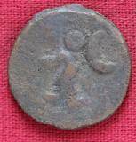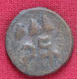 | Description / विवरण | The shape of the coin is circular. Obverse The figgure of MAO or Moon God standing with right hand e xtened and the crescent above the left shoulder. Reverse Three hills or cone like objects placed in a straight line and below them some letters. |