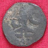 | Description / विवरण | The shape of the coin is circular. Obverse Kushana type king, standing with his right hand curved upwards and his left arm e xtended upwards. Reverse Probably the figure of MAO or Moon-God with his right arm curved upwards and the crescent above the left shoulder. |