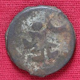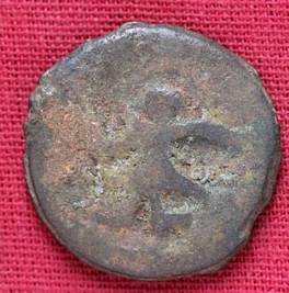 | Description / विवरण | The shape of the Coin is circular. Obverse -A Kushana type king standing with his right arm curved upwards and left arm curved downwards. Reverse -Probably, a standing figure of MAO or Moon-God with right arm curved upwards and the crescent above the left shoulder. The left arm is not visible. |
