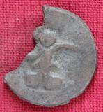 | Description / विवरण | The shape of the Coin is circular. Obverse -A Kushana type king standing with his right arm curved upwards and left arm curved downwards. Reverse -Probably, a standing figure of MAO or Moon-God with right arm curved upwards and the crescent above the left shoulder. The left arm is not visible due to broken condition. |