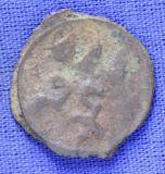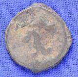 | Description / विवरण | The shape of the coin is circular. Obverse Probably the figure of MAO or Moon God with right arm curved upwards and the crescent above the left shoulder. Reverse Three hills or cone like objects placed in a straight line and bellow them some letters. |