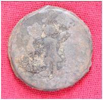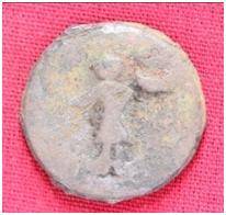| Description / विवरण | The Shape of the Coin is Circular. Obverse A Standing figure of Kushana type king, with uplifted left hand and right hand is not visible, wears boots and tunic. Reverse Probably standing figures of MAO or Moon-God, with the crescent above the left shoulder, hands are not visible, wears boots tunic. |