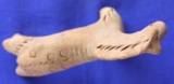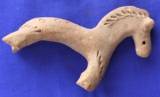 | Description / विवरण | Model probably of a horse. Eyes are represented by incised pellets, nostrils by holes and ears by pellets of clays. Circular and oblique punches all over the body. Four legs are missing. |