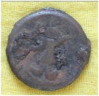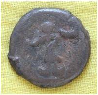 | Description / विवरण | The shape of the coin is circular. Obverse-Kushana type king standing with his right hand upwards and left hand down wards. Reverse-- probably the figure of MAO or Moon God- with right arm curved up wards and the crescent above the left shoulder. |
