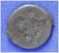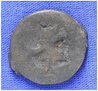 | Description / विवरण | The shape of the coin is circular. Obverse-Kushana type king standing with his right hand upwards and left arm extended Reverse-- three hills or cone like objects placed in a straight line and below it, there is an inscription. |