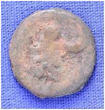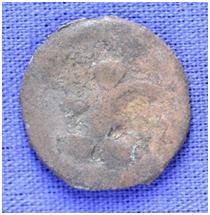 | Description / विवरण | The shape of the coin is circular. Obverse- Kushana type king standing with his right hand upwards and left arm extended. Reverse-- probably the figure of MAO or Moon God- with right arm curved up wards and the crescent above the left shoulder. |