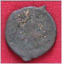 | Description / विवरण | The shape of the coin is circular. Obverse-Kushana type king, standing with his right arm curved up wards and left arm extended. Acrescent at right top of the figure. Reverse- Probably the figure of MAO or Moon-God with his right arm curved up wards . |